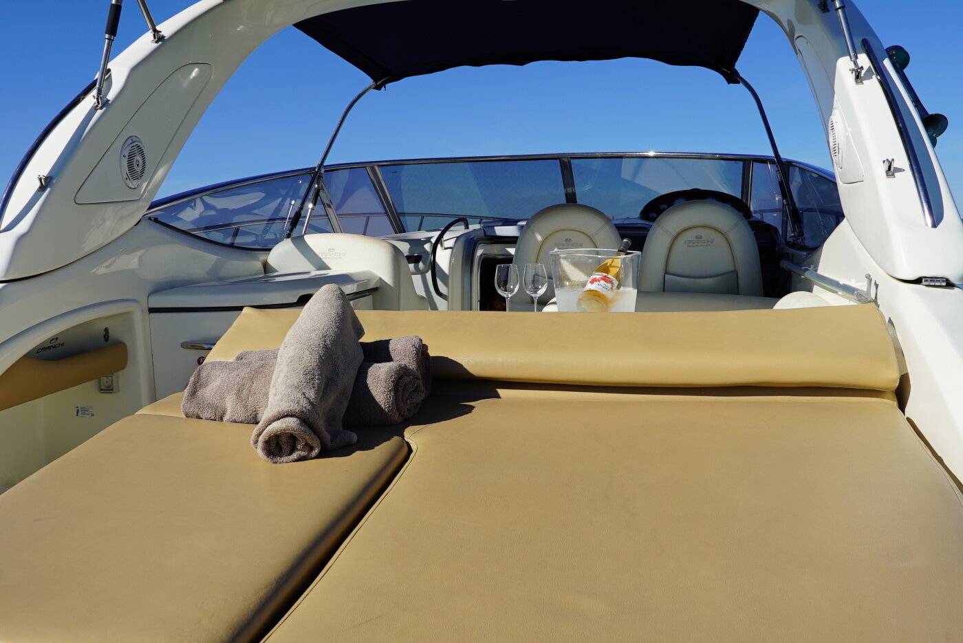 The Cranchi 41 yacht is one of the best options of its kind. It has large outdoor spaces with a solarium in the bow and stern. It also has a cabin, as well as a convertible saloon, allowing an overnight stay on board. It is one of the most popular models to enjoy a yacht charter day in Ibiza and Formentera.