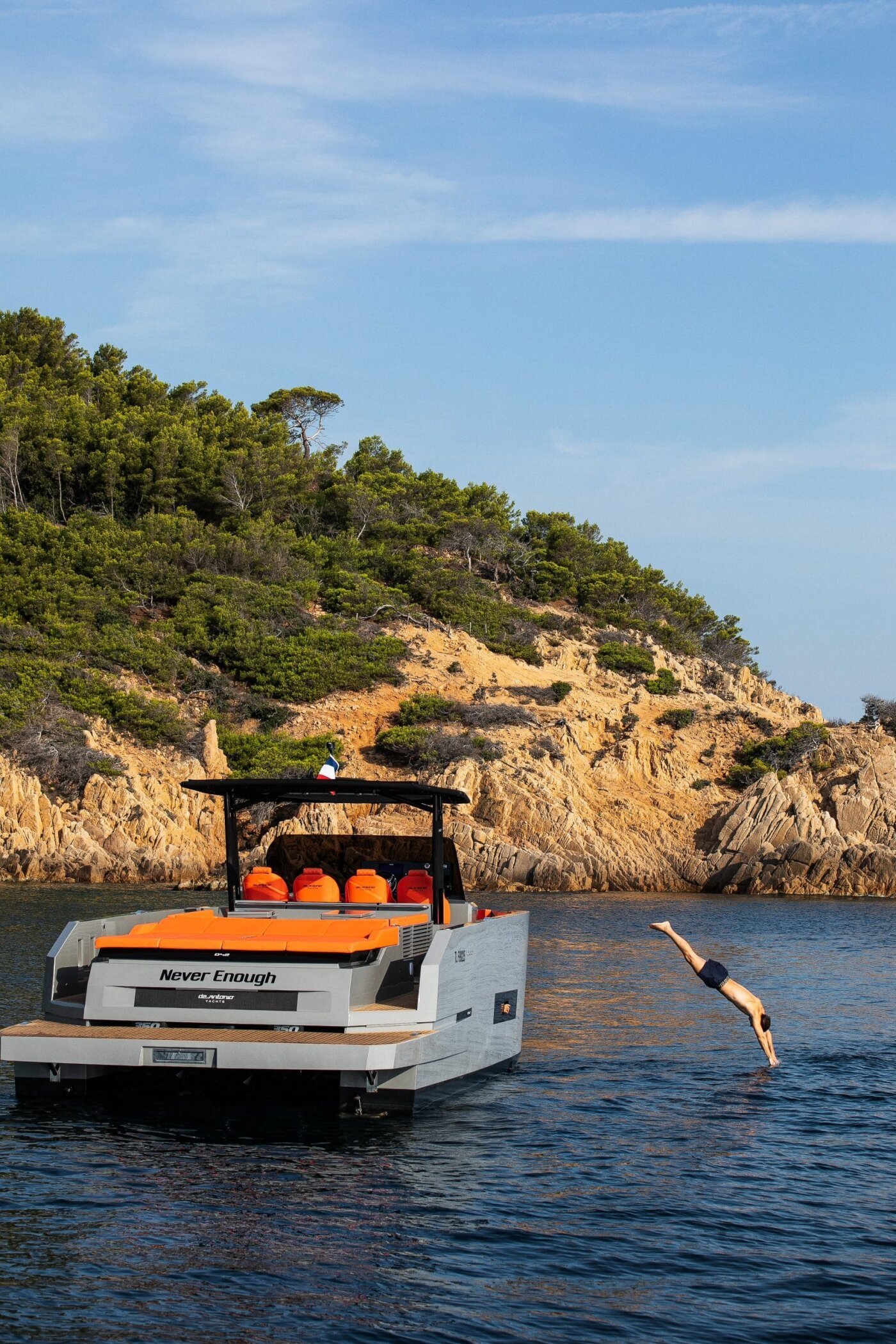 Experience the ultimate day charter on the stunning D42 from DeAntonio Yachts in Ibiza and Formentera. With its sleek design and powerful engines, it offers a smooth and comfortable ride. The spacious deck is perfect for lounging and sunbathing, while the impressive sound system provides the perfect soundtrack for your day on the water. Soak up the sun and enjoy the soft breeze as you explore the crystal clear waters and stunning natural beauty of Formentera.